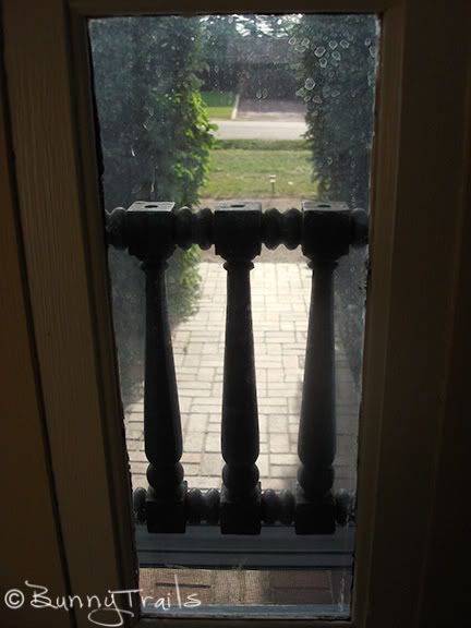 No, your eyes are not deceiving you - the step is a little cockeyed. Notice our little feline friend hanging out in the window? She loves the sun.